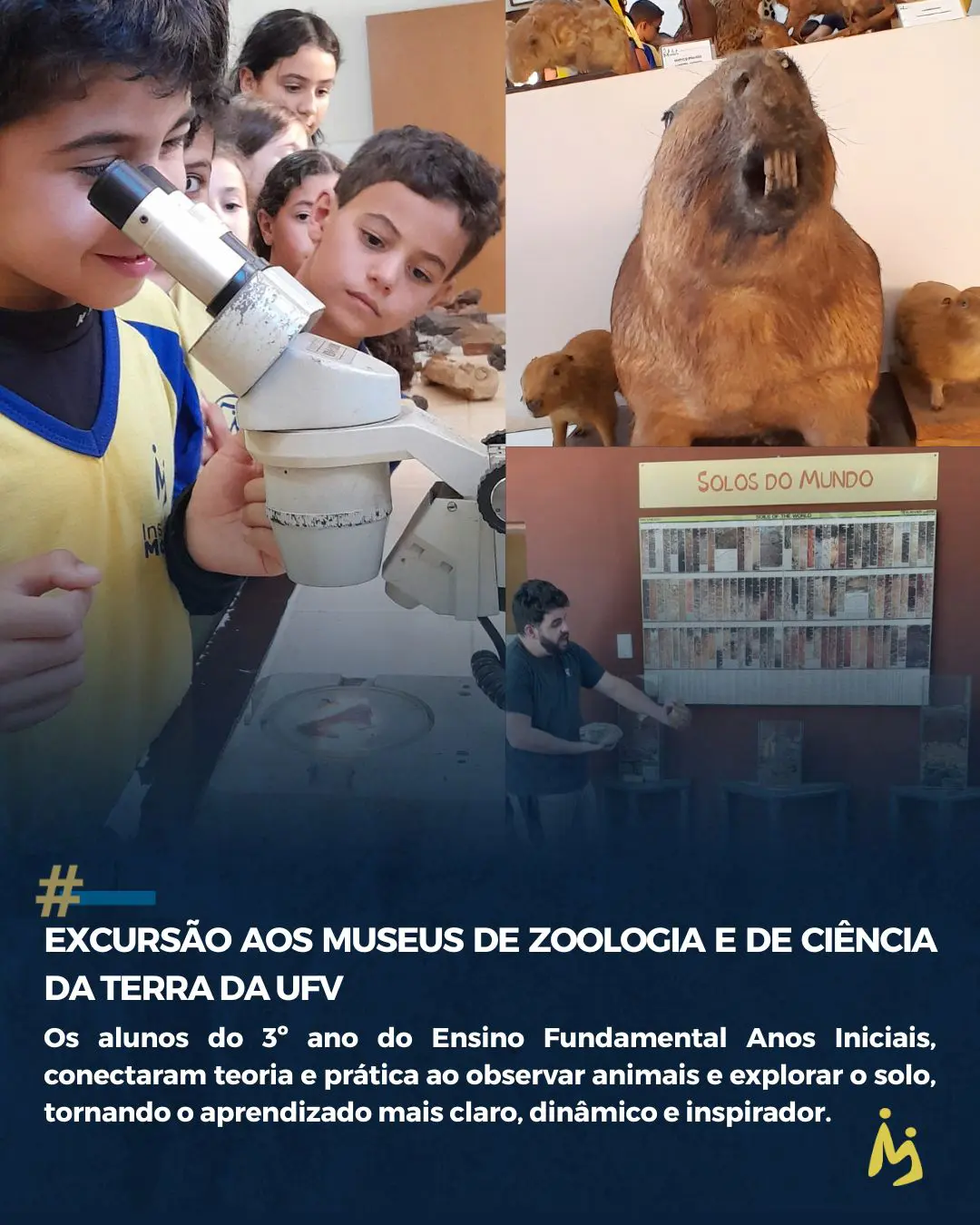 Os alunos do 3º ano vivenciaram experiências marcantes em duas visitas à UFV: no Museu de Zoologia, observaram de perto animais vertebrados e invertebrados, conectando