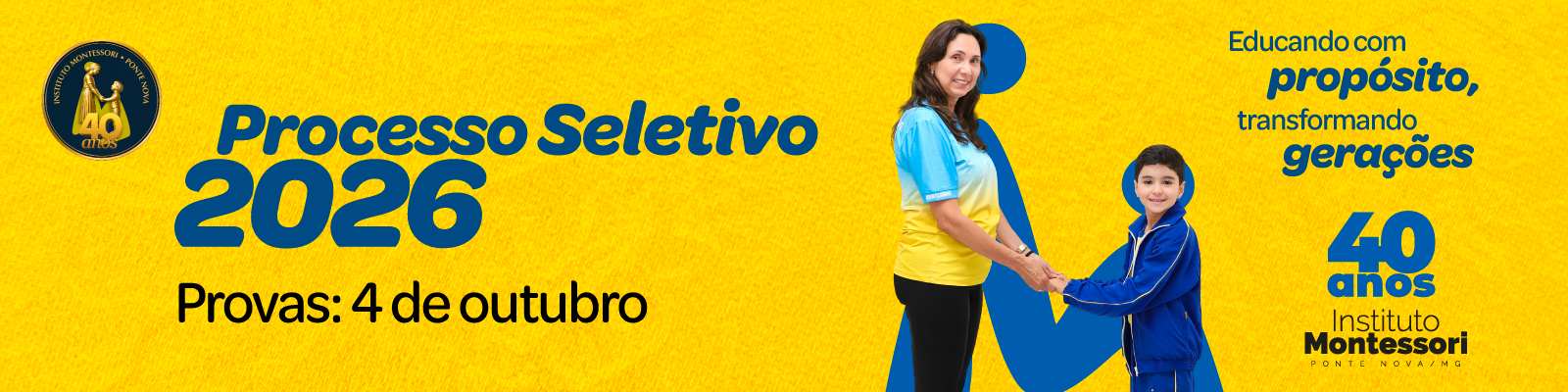 Comunicamos que o Processo de Admissão de Alunos Novatos do Instituto Montessori para o ano letivo de 2026 está aberto. Contando com vagas para as turmas do Ensino Fundamental anos iniciais (1º ao 5º ano), Ensino Fundamental anos finais (6º ao 9º ano) e Ensino Médio.