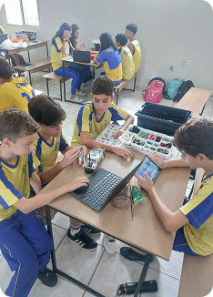 • Aulas Interativas: Aprendizado baseado em projetos com kits de robótica e ferramentas tecnológicas.